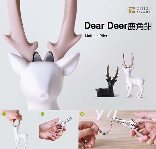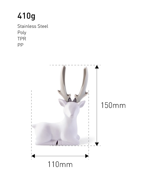剛性結構與柔性材質相互搭配,增加工具給人的親和感,鉗子與鹿身結合呈現整體設計的優雅特質,不僅實用性十足,更為提高家居品質的精美擺飾。