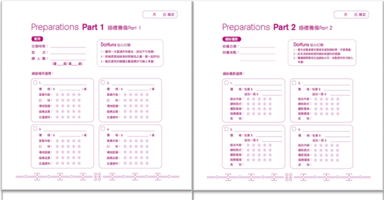婚禮企劃/場地布置 /婚禮開支表/工作人員表/宴請親友列表)