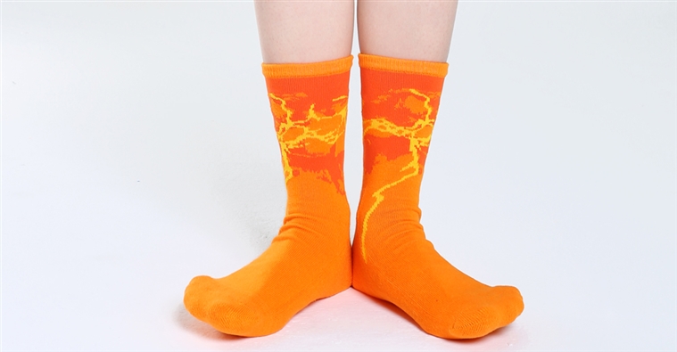 襪底以氣墊式織法創造如毛巾底加厚的柔軟厚實觸感,