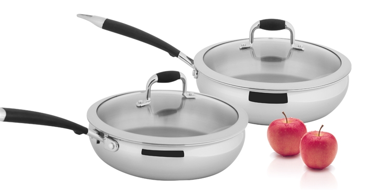 「蘋果鍋具組」以果中紅鑽為靈感來源,形塑蘋果般的可愛圓弧鍋體,