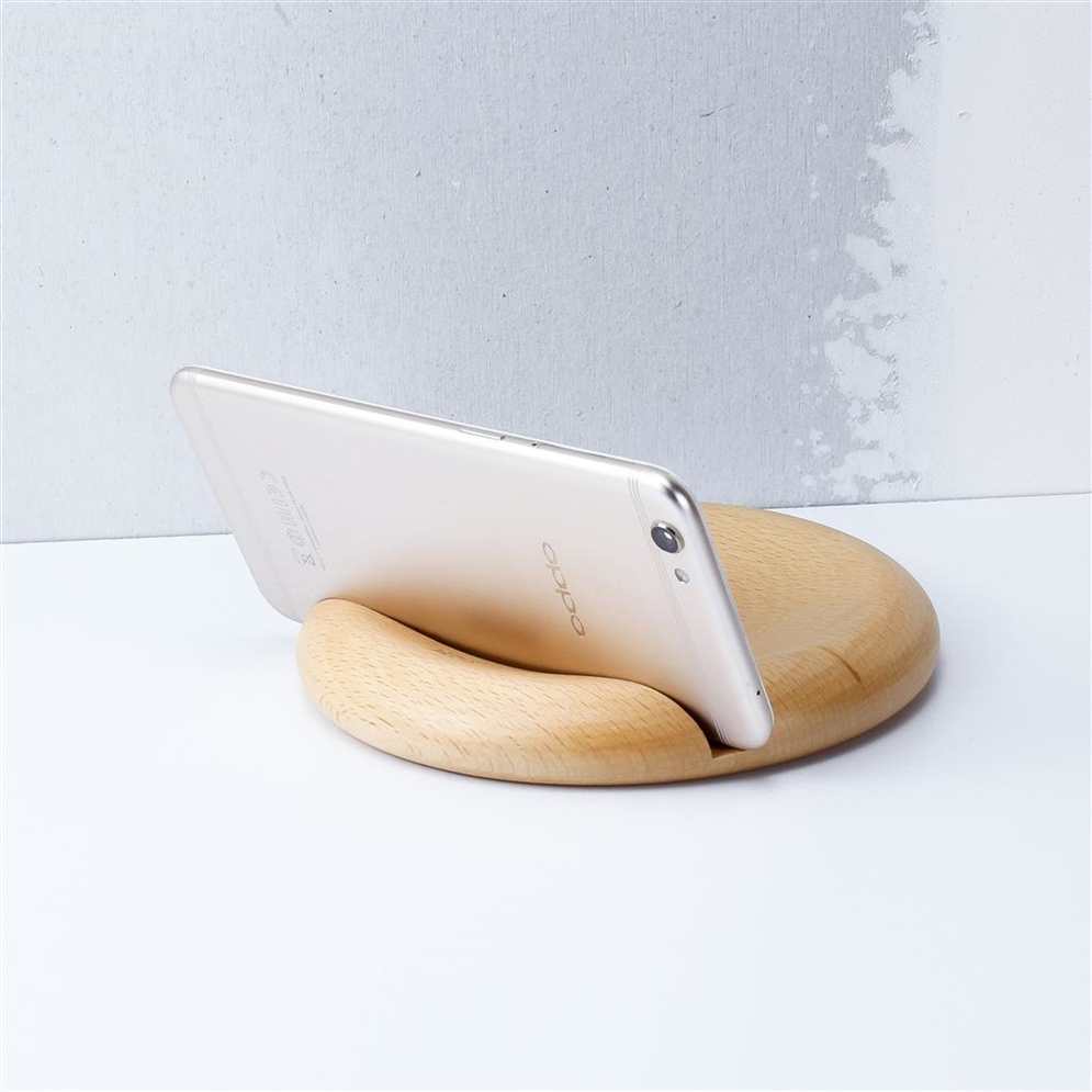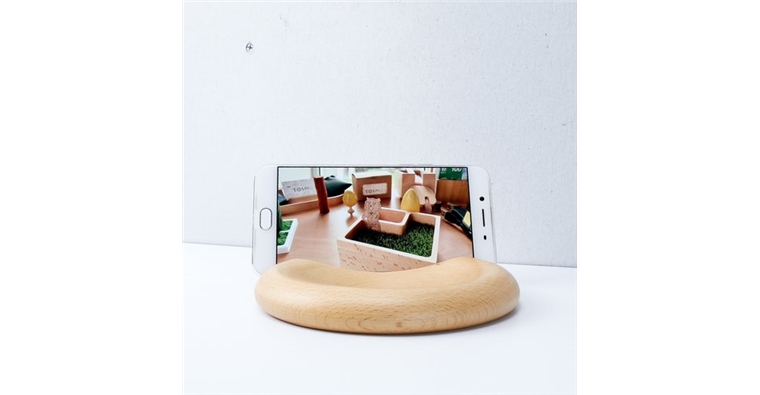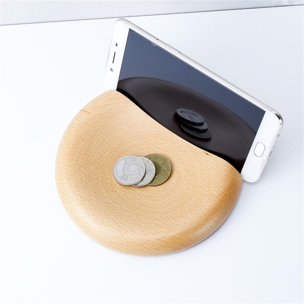 不單單是一塊實木圓,前方微凹處可放置耳機、螢幕擦拭布