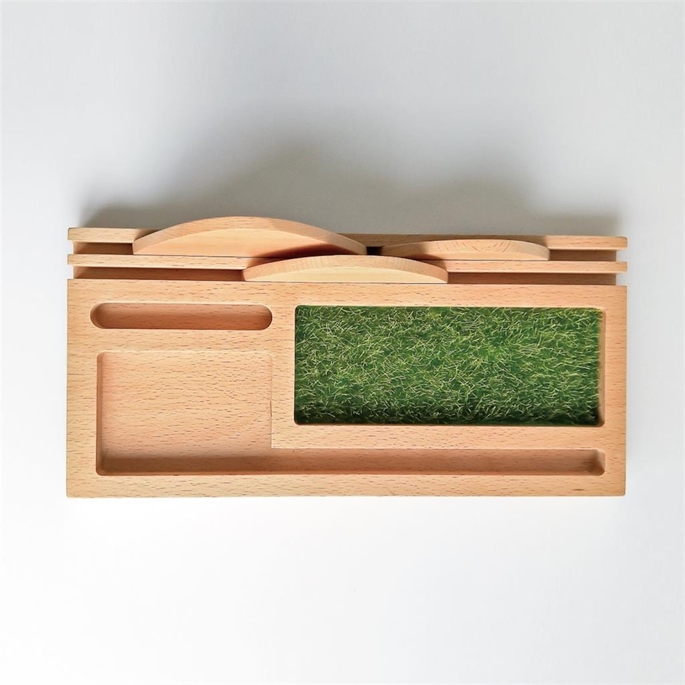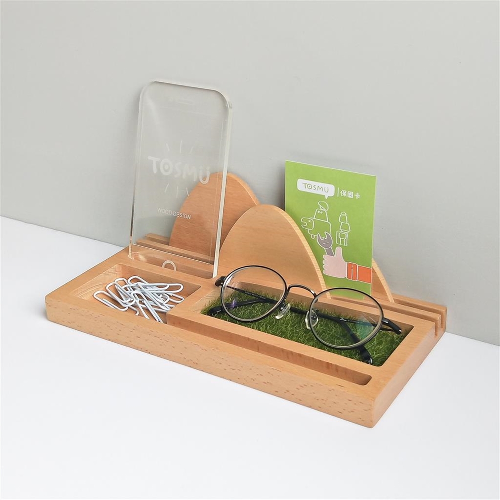 右上方綠草地依照眼鏡大小設計,讓您午休時眼鏡有個家