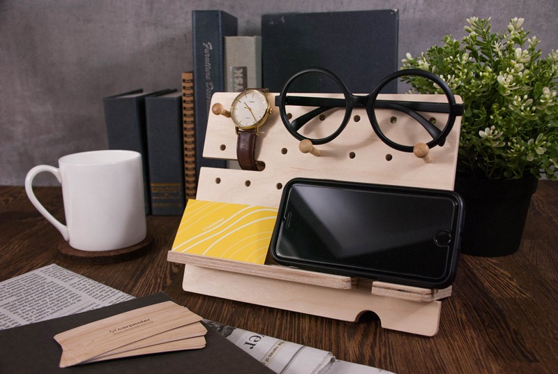 也可以放置手機,洞洞板下方凹槽可讓充電線通過,不用擔心電線打結喔!