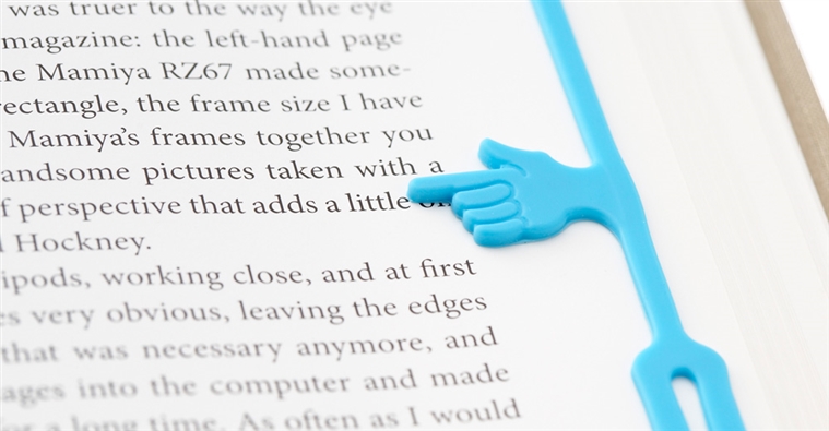 POINTING FINGER手指書籤採用環保矽膠材質,彈性適中且可多次重複使用,長時間延展也不易變形,特殊的環線設計可以變換成不同的綑綁方式顏色上有螢光黃、螢光藍及螢光紅三種亮系色彩可供選擇。除了書籤之外,也可當作書綁使用,鮮豔的螢光色系明顯標示桌上哪本書是你的,彈性矽膠材質適合各種尺寸及厚度的書籍使用。