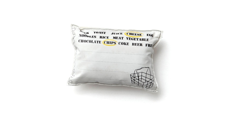 SHOPPING LIST購物清單環保包,收納袋上的特殊印刷讓你可以直接以鉛筆在上面重覆書寫,展開後則是加大尺寸的正紅色包包,上面印有簡單可愛的小圖示,讓你可以輕鬆地在使用完後將包包收回收納袋中。